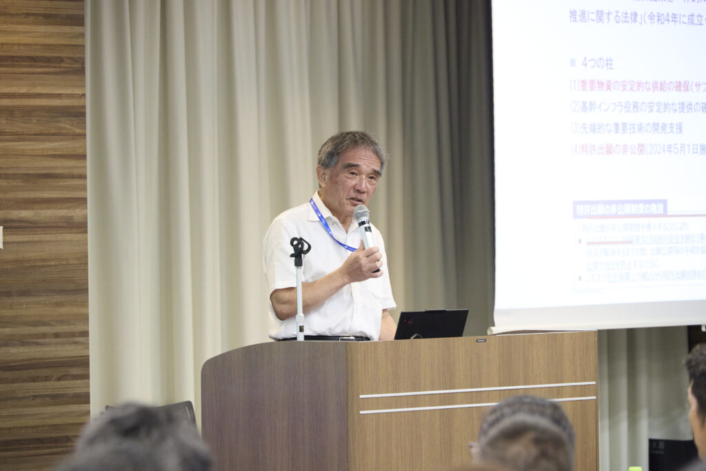 生成AIの登場や地政学リスクの拡大により知財制度が揺らぐ中で、知財部門は単なる権利管理ではなく、経営戦略と結びついた長期的視点からの価値創出が求められると指摘。特許制度の軋みや経済安全保障の動向を踏まえ、知財を経営に資する存在へと昇華させる重要性や、人材育成の必要性を強調しました。